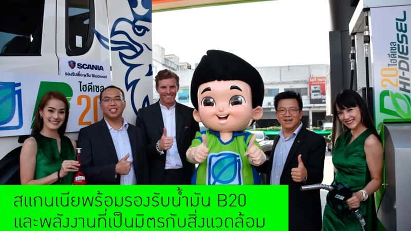 นายสถิตย์ ริยะตานนท์ ผู้อำนวยการฝ่ายบริการหลังการขายบริษัท สแกนเนีย สยาม จำกัดกล่าวว่า การเจริญเติบโตในธุรกิจโลจิสติกส์ของไทยในปัจจุบัน มีการพัฒนาการใช้ระบบพลังงานทางเลือกมากขึ้น และจากการที่รัฐบาลมีนโยบายให้หันมาใช้น้ำมันไบโอดีเซล B20 นั้น ทำให้ผู้ประกอบการขนส่งหลายแห่ง สนใจเปลี่ยนมาใช้เชื้อเพลิงทางเลือก อย่างไรก็ตาม โดยปกติน้ำมัน B20 จะมีอัตราสิ้นเปลืองน้ำมันสูงกว่าน้ำมันดีเซลเล็กน้อย ดังนั้นสแกนเนียได้คิดพัฒนาโปรแกรมระบบในการฉีดน้ำมันที่หัวฉีดสำหรับรถบรรทุกและรถโดยสาร เพื่อช่วยให้ประหยัดพลังงาน และใช้งานได้มีประสิทธิภาพมากขึ้นจากเดิม ซึ่งจะมีค่าใช้จ่ายในการปรับแต่งนี้เล็กน้อย และจะต้องเป็นรถสแกนเนียที่ผลิตตั้งแต่ปี 2008 ขึ้นไป นำมาเข้าศูนย์บริการเพื่อเปลี่ยนอะไหล่บางส่วน รวมถึงลงระบบซอฟต์แวร์ใหม่ ซึ่งลูกค้าสามารถพูดคุยสอบถามรายละเอียดกับเราก่อนได้