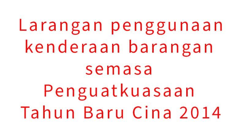 Larangan penggunaan kenderaan barangan semasa Penguatkuasaan Tahun Baru Cina 2014